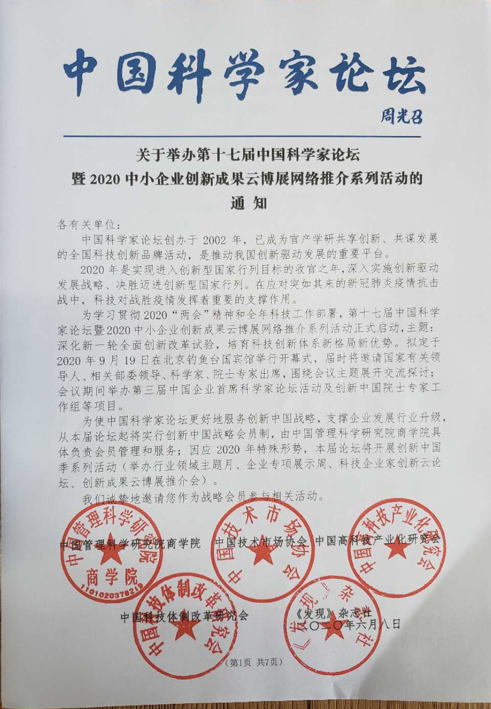 袁氏策划及袁总受邀参加第十七届中国科学家论坛