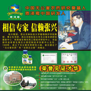 2006年6月16日,美国专利无公害杀菌剂《恩泽霉》的中国研制方——西北农林科技大学无公害农药研究服务中心营销部慕名与我公司签订了该项目的整体推广方案,标志着我公司开始跨行业实施营销整合与推广。经过近3个月的天南海北走村串户考察以及农田取证调研,我们制定了完美、独特的类似医药保健品式的营销方案。获得了西北农林科技大学无公害农药研究服务中心营销总监安西平先生的肯定和高度赞誉。2006年11月22-24日,厦门农资产品双交会上,博得满堂彩的安西平总经理特别致谢本公司袁总,对我们的整体策划工作给予高度评价和特别感谢。