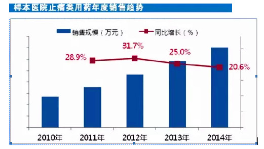 阿司匹林在医院数据中分类归在神经系统的止痛药细类中,止痛药占整个神经系统的11.7%,销售一直保持20%左右的强劲增速,而止痛药中,阿司匹林占了9.6%的市场。